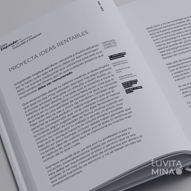 Descubrí 14 actividades prácticas que te guiarán en la creación de tu emprendimiento. Conocé 21 herramientas basadas en técnicas de vanguardia como el design thinking, metodologías ágiles y el diseño estratégico, así como técnicas de creatividad que te ayudarán a llevar tu emprendimiento al siguiente nivel. Encontrarás, también, información esencial sobre propiedad intelectual, imagen de marca, sistema de productos, finanzas personales y de tu negocio, e-commerce, fijación de precios, ¡y mucho más!